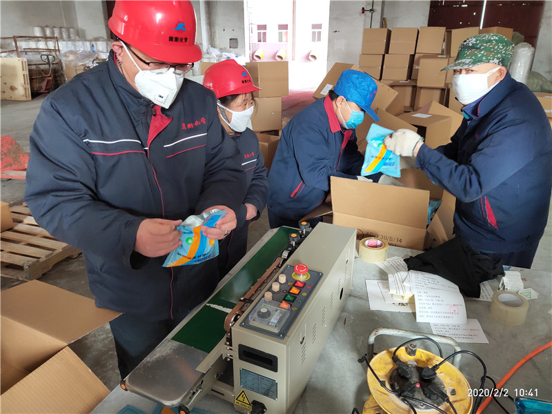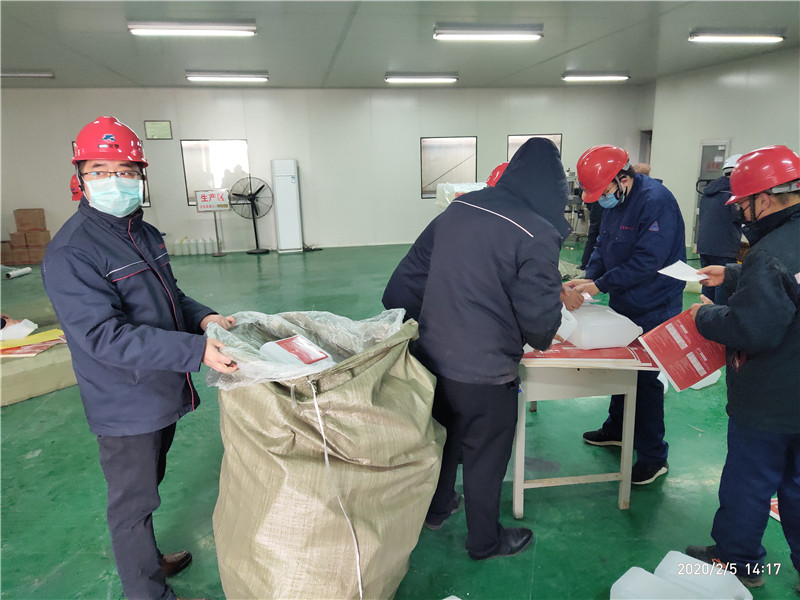 疫情爆發(fā)以來,冀衡化學公司充分發(fā)揮黨組織戰(zhàn)斗堡壘作用和黨員先鋒模范作用,全面部署、迅速行動、周密安排,嚴密防控,全體黨員在崗在位,黨員干部沖鋒在前,以黨建引領,堅決打贏新冠肺炎疫情防控阻擊戰(zhàn),在做好公司防控工作的同時,公司全體黨員自愿組成黨員突擊隊,加班加點不計報酬,義務勞動灌裝消毒液產品,倒裝消毒顆粒產品,協(xié)助政府打好防控消毒戰(zhàn)!